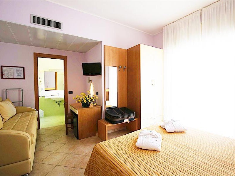Nabízíme 2-4 lůžkové menší pokoje typu Standard (17 m2) a prostornější pokoje typu Superior (26 m2). Všechny pokoje jsou vybavené balkonem a klimatizací. K dispozici jsou i bezbarierové pokoje.