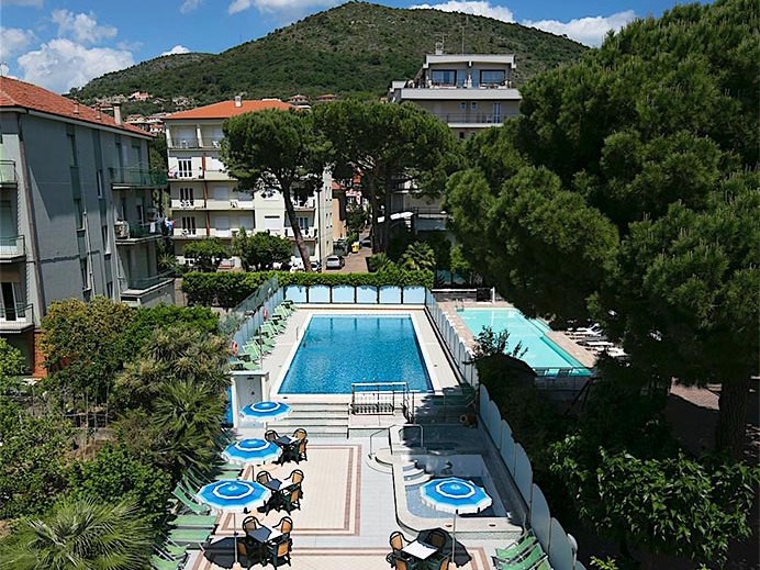 hotel se nachází (v ulici Via Torino 20) cca 200 m od pláže. nedaleko obchodů všeho druhu a restaurací. Nachází se v klidnější části letoviska, 800 m od centra Pietra Ligure. Hotel, který prošel celkovou rekonstrukcí, se skládá ze dvou třípodlažních budov (od sebe vzdálených 30 m), je vhodný pro rodiny s dětmi a nejen pro ně. Ve vybavenosti má bazén (22 x 8 m), dětský bazén a vířivku. Pro cyklisty je k dispozici půjčovna jízdních kol. Dále je k dispozici zahrada, a solární terasa s lehátky a slunečníky.