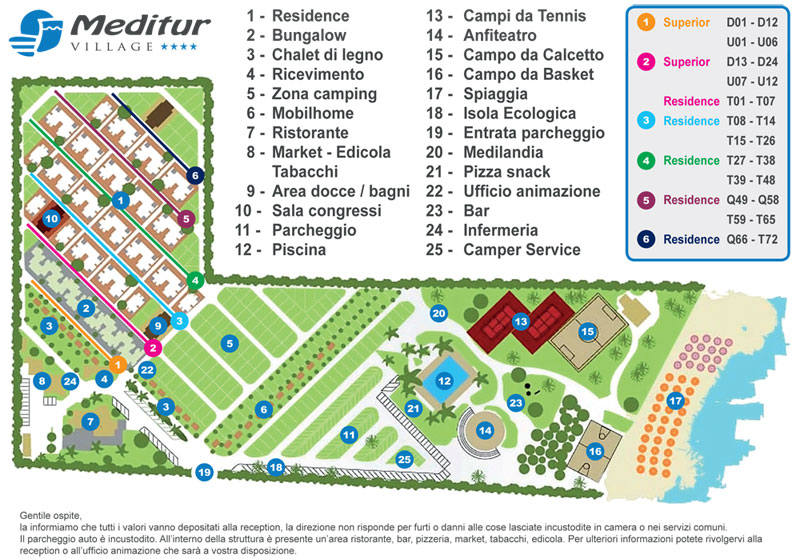 residenční a hotelový komplex Villaggio MEDITUR přímo sousedí s chráněným přírodním parkem Torre Guaceto. Od města Brindisi je vzdálen cca 15 km a od krásné pláže pak 150 – 300 m. Jedná se o nové villaggio (rok 2009), které nabízí jak hotelové ubytování, tak ubytování residenční. Ideální pro rodiny s dětmi, k dispozici je bazén a další skvělé sportovní vyžití (2 tenisové kurty, fotbalové hřiště s umělou trávou, multifunkční hřiště na basketbal a volejbal, 2 hřiště na bocce). Dále pak amfiteátr, kde se konají animační programy, miniclub, restaurace a bar. Byty a hotelové pokoje jsou umístěné v přízemních vilkách a všechny jsou klimatizované, s TV a s verandou se zahradním nábytkem. Nabízíme apartmany velikosti