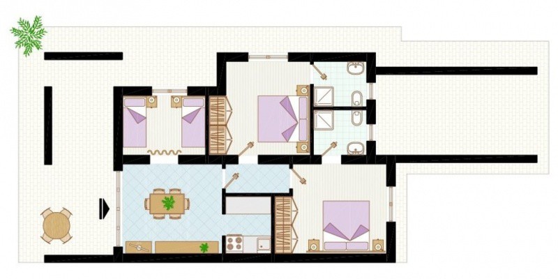 ubytování v bytech vybavených s kompletně zařízenou kuchyňskou linkou, plynovým sporákem, lednicí, dvěma vlastními sociálními zařízeními, klimatizace, TV-sat, kávovar, trezor na vyžádání, mikrovlnná trouba, terasa vybavená zahradním nábytkem, velká oplocená předzahrádka