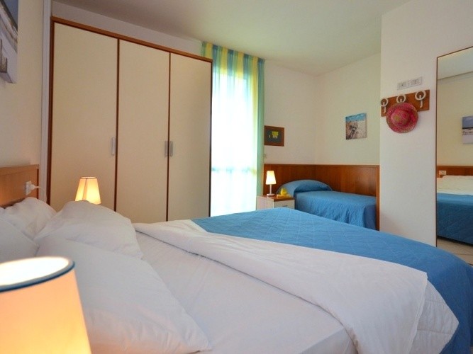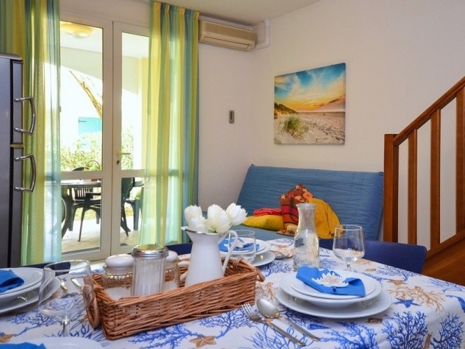 villaggio MARCO POLO je oplocený areál, který leží cca 450 m od pláže, v ulici Via delle Nazioni (na rohu s ulicí Via Unita d´Italia). Umístění většiny bytů villaggia zaručuje klidnou polohu. V ceně pobytu je též rozvoz a svoz na pláž a větší vzdálenost od pláže je tedy klientům kompenzována touto skvělou službou, která tak villaggio MARCO POLO dostává do souboru ubytovacích kapacit nacházejících se „jen pár kroků" od pláže... Villaggio MARCO POLO je tvořeno řadovými vilkami, které mezi sebe uzavírají velký bazén s oddělenou částí dětského bazénku. Rodiny s dětmi ocení bohatý animační program, dětské hřiště, zapůjčení dětských kočárků a židliček. Nabízíme mezonetové byty (s vnitřním schodištěm) velikosti BILO 5, TRILO 7. Byty typu B5 a C7 mají parkovcí stání kryté pergolou a typy B1-5 a C1-7 pak mají garážové stání. Každý má k dispozici balkon a vlastní předzahrádku. Všechny byty mají plně vybavenou kuchyňský kout, sociální zařízení (byty Trilo 2x) a dále mají ve vybavenosti, TV-sat, klimatizace, trezor, mikrovlnná trouba, kávovar, topení, venkovním krb a WiFi.