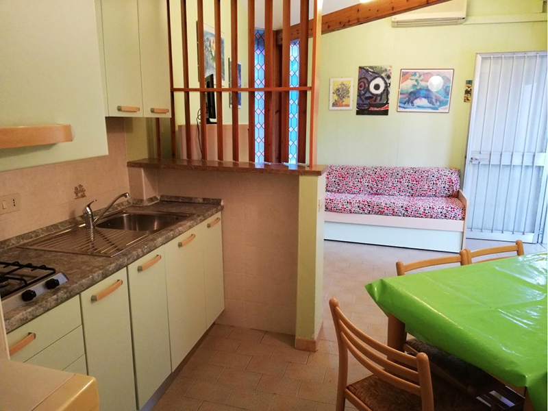 villaggio QUADRIFOGLIO je oplocený uzavřený areál, který leží na rohu ulic Via Cellina a Via Cormor. Leží ve velmi klidném prostředí cca 900 m od pláže. Od villaggia QUADRIFOGLIO je nedaleko (cca 400 m) obchodní třída a večerní pěší zóna. V ceně pobytu je též rozvoz a svoz na pláž a větší vzdálenost od pláže je tedy klientům kompenzována touto skvělou službou, která tak villaggio QUADRIFOGLIO dostává do souboru ubytovacích kapacit nacházejících se „jen pár kroků" od pláže... Villaggio je tvořeno řadovými vilkami, které obklopují zahradu s bazénem s oddělenou částí dětského bazénku. Nabízíme pouze byty velikosti TRILO 6/8. Byty jsou mezonetové (dvoupodlažní s vnitřním schodištěm) nebo jednopodlažní a každý má k dispozici parkovací stání. Každý byt je vybaven TV, klimatizací, mikrovlnnou troubou, trezorem, kávovarem, některé byty mají pračku. Všechny byty mají plně vybavenou kuchyňský kout a 1-2 sociální zařízení.
