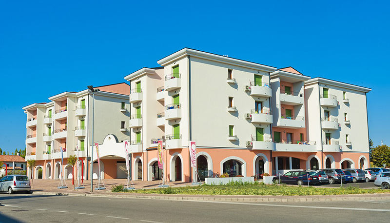 nově vybudovaná (rok 2012) residence GRAN MADO se nachází v části zvané Spiaggia Levante, v klidné uličce cca 400 m od historického centra a cca 150 m od pláže. Ve spodní části se nachází nákupní galerie se supermarketem a další nejbližší obchody a restaurace jsou vzdálené cca 200 m. K dispozici je bazén s odděleným dětským bazénkem. Nabízíme luxusně vybavené byty velikosti MONO 4, BILO 4-5 a TRILO 6-7 se složením: