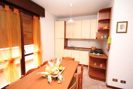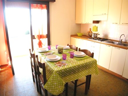 QUADRILO 8 má složení: 1 čtyřlůžková ložnice (2 manželské lůžka), 2 dvoulůžkové ložnice, obývací pokoj s kuchyňským koutem, sociální zařízení se sprchou, balkon