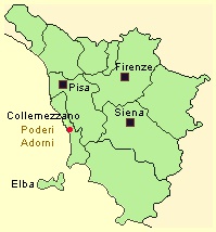 vila se nachází v Collemezzano, lokalitě kopcích 7 km od nejbližší pláže (Vada) a cca 7 km od města Cecina, v nádherném klidném prostředí olivovníků a polí. Ve starém historickém statku bylo vkusně vybudováno 8 bytů v toskánském stylu.