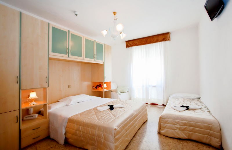 Nově zrekonstruovaný hotel se nachází nedaleko pláže v části zvané Bibione - Lido dei Pini. Hotel má označení 2**, ale kvalitou se je spíše 3***. Jedná se o rodinný (rodina Ferrari spravuje hotel desítky let...) garantující osobní, domácí a vřelý přístup ke svým hostům !! Hotel se nachází v klidném místě, ale nedaleko (100-200 m) od začátku rušné promenády nabízející množství obchodů, restaurací, pizzerií a barů. Hotel nabízí sice jen pobyt se snídaní, ale pro své hosty nabízí v sousední restauraci možnost zakoupení večeří za zvýhodněnou cenu. Jedná se o nejpohodlnější formu dovolené. Hotelové ubytování se všemi komforty, kdy se nemusíte vázat na pevné časy hotelových restaurací, ale můžete navštívit jakoukoliv restauraci a pizzerii v jakoukoliv večerní hodinu ... Hotel nabízí klimatizované pokoje pro 2-4 osoby ve 3 kategoriích (Econom, Standard a Comfort). K dispozici WiFi zdarma.