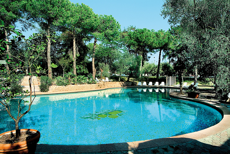hotel MARCO POLO *** se nachází v ulici Via Dei Cipresi, cca 500 m od centra s obchody, 350 m od jezera a 500 m od pláže. Hotel se rozkládá na krásném panoramatickém místě s výhledem na jezero, v prostředí přírody obklopeném florou (olivovníky,vinice, zahrada). K vybavenosti villaggia patří recepce, výtah, Wi-Fi ve společných prostorách (za poplatek), bazén pro dospělé a dětský bazén, solární terasa, minimarket, restaurace, pizzeria, bar, dětské hřiště, stolní tenis, tenisové kurty (za poplatek) a parkoviště. Hotelové pokoje jsou umístěné ve třech budovách a všechny mají ve vybavenosti vlastní sociální zařízení, fén, TV-sat, trezor, topení, telefon, balkon nebo terasu s panoramatickým výhledem a se zahradními židličkami.