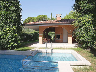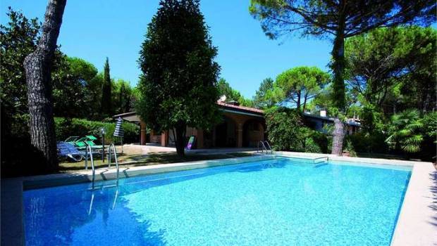 zcela ojedinělá vila na celém severním Jadranu !! Unikátní tím, že je samostatná s vlastní zahradou a s vlastním bazénem pouze pro osoby ubytované v této vile !!! Pro pohodlí rodičů s dětmi je tam též oddělený dětský bazének. Nachází se v klidném prostředí, v části zvané Lignano Riviera, v ulici Calle Corneille 11. Vila Sabrina je prostorná samostatná vila se zahradou s piniemi, je vzdálená 600 m od pláže a je vybavena též pračkou, myčkou, trezorem a klimatizací (za příplatek). Vila nabízí byt velikosti PENTALOCALE pro 9 osob se složením 3x manželská ložnice, 1x jednolůžková ložnice, obývací pokoj s rokládacím dvoulůžkem, kuchyňka, 3x sociální zařízení (1x s vanou a 2x se sprchovým koutem), venkovní krb, velká zastřešená terasa se zahradním nábytkem, prádelna, garáž, zahrada s parkovacím místem. Jedinou nevýhodou je vyšší cena ...