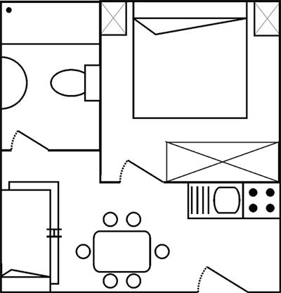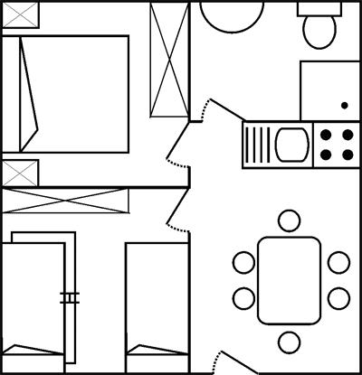 Bungalovy jsou terasovitě rozmístěny a obklopeny zelení a olivovníky, které svým stínem chrání před teplými slunečními paprsky. Nabízíme dva typy ubytování: bungalovy ve velikosti bilo 4 a trilo 5-6 osob a velmi vkusně vybavené obytné přívěsy – mobil home. Velké slevy pro skupiny