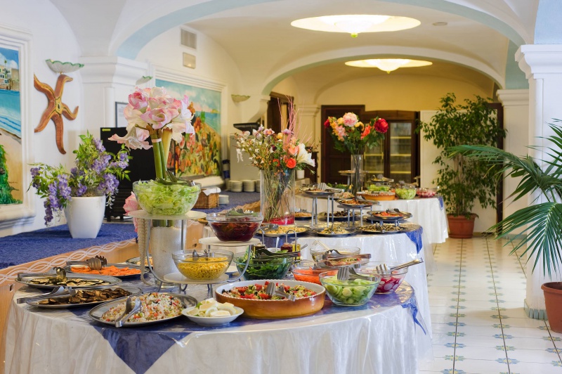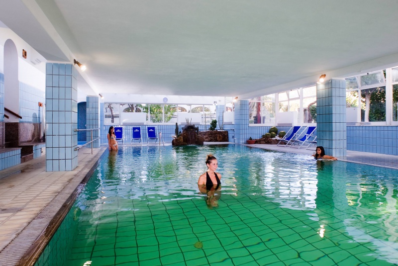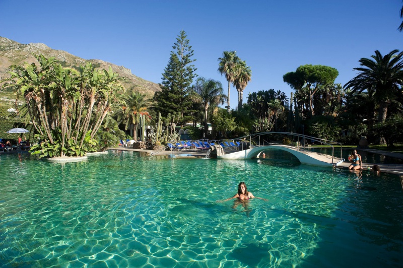 hotel, který se celým názvem nazývá PARK HOTEL TERME MEDITERRANEO (zkráceně používáme hotel MEDITERRANEO) je rozsáhlý hotelový komplex se skládá z hlavní budovy (kategorie 4****) a ze dependance – a 4 přilehlých (150 – 400 m od hlavní budovy) menších budov (typ Dependance 3*** - 4****) umístěných v rozlehlé soukromé zahradě s tropickými a subtropickými rostlinami samostatných, dále pak ze samostatných vilek umístěných mimo areál (200 – 700 m od hlavní budovy) v samostatných zahradách (kategorie 3***).