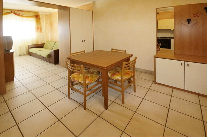 Byt TRILO 6/7 (60 m2) má složení - 1 ložnice s manželskou postelí, 1 třílůžková ložnice s palandou (u bytu Trilo 7 další samostatné lůžko navíc), obývací pokoj s kuchyňským koutem a rozkládacím gaučem pro 2 osoby, sociální zařízení se sprchou.