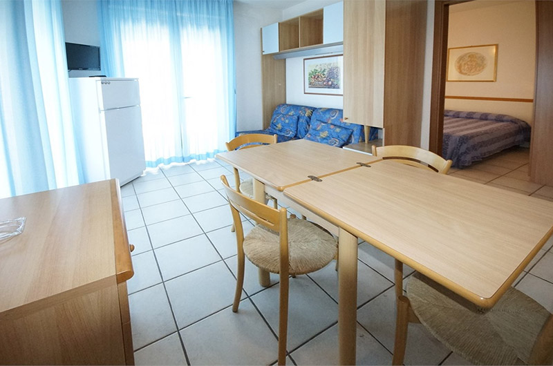 Byt BILO 4-5(6) (45 m2) má složení - 1 ložnice s manželskou postelí, obývací pokoj s kuchyňským koutem a rozkládacím divanem pro 2 osoby, páté lůžko ve formě rozkládacího lůžka ze skříně, sociální zařízení se sprchou. 6. Lůžko je ve formě přistýlky je na dotaz.